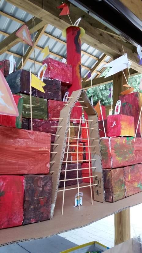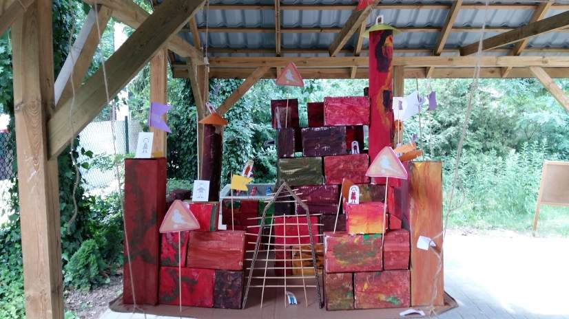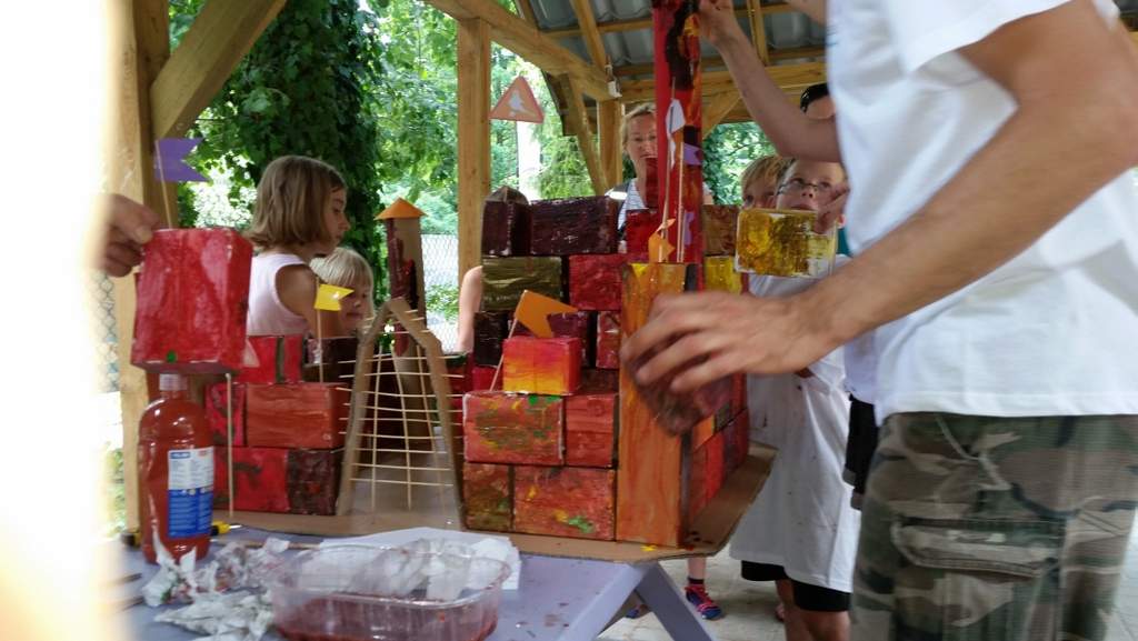 Na warsztatach z cyklu „CEGŁA DO CEGŁY A POWSTANIE ZAMEK” dzieci budowały wspólnie jeden duży i straszny zamek. Praca ta towarzyszyła nam do końca wszystkich spotkań.