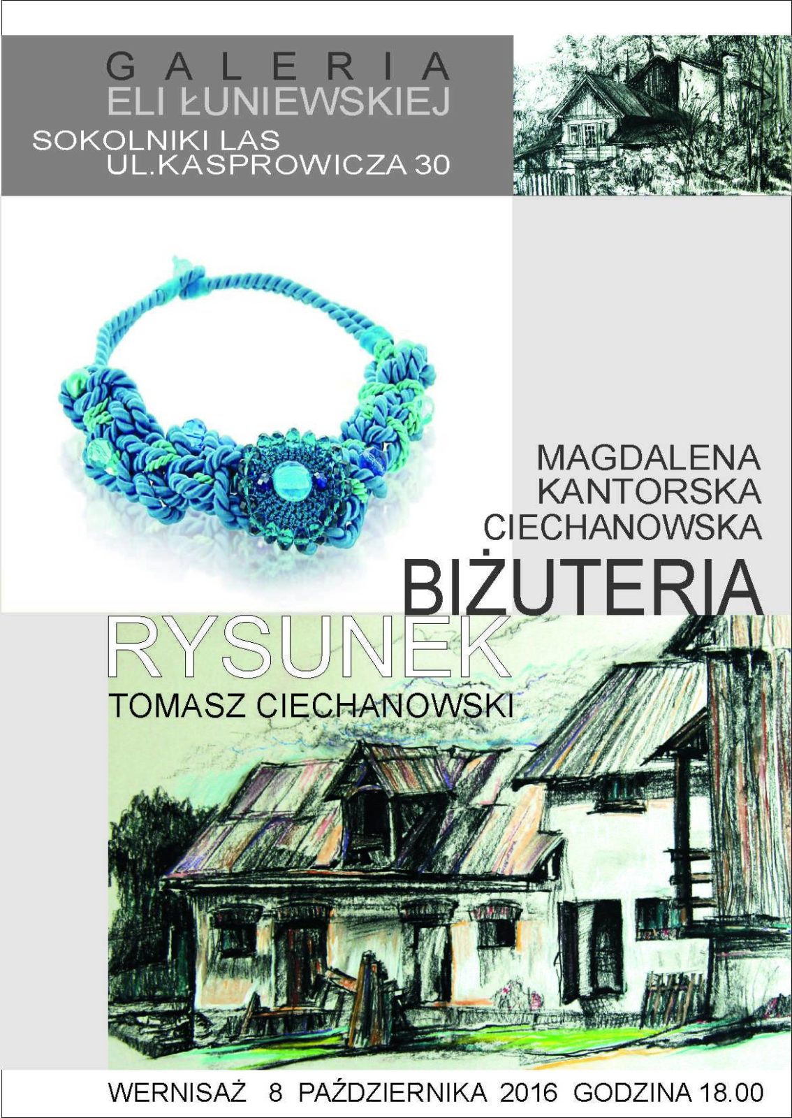 Wystawa prac Magdy i Tomka Ciechanowskich w Galerii Eli ŁuniewskiejZapraszamy wystawę prac Magdy i Tomka Ciechanowskich w Galerii SokolnikachWernisaż w sobotę o godzinie 18:00