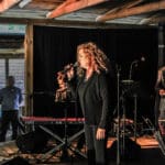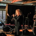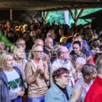 Pani Hanna uprzedziła uczciwie, że nie wykona swoich tak zwanych „starych przebojów”, wyjątek zrobi dla dwóch utworów, ale zadała warunek, aby publiczność zaśpiewała razem z wokalistką. I tak mogliśmy popląsać przy wspólnie śpiewanych : „W moim magicznym domu” oraz „Truskawki w Milanówku”. Prawie wszyscy znali słowa, było radośnie i żywiołowo, a pani Hanna Banaszak nazwała Sokolnicką publiczność „muzykalną” co znów zachęciło słuchaczy do gromkich aplauzów.