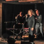 Pani Hanna zdradziła, iż najdłużej bo 25lat współpracuje z panem Andrzejem Mazurkiem, instrumenty perkusyjne. Publiczność wysłuchała utworu kompozycji pana Mazurka pod znamiennym tytułem ” Mazurskie Fale” wykonanego solo przez autora. Utwór, sądząc po reakcjach publiczności bardzo się podobał. Mieliśmy też przyjemność posłuchać grającego na kontrabasie pana Zbigniewa Wrombla, nad akustyką czuwał pan Paweł Haus. Najkrócej gra z Hanną Banaszak pianista Jacek Szwaj, jak sama przyznała, utalentowany młody człowiek, który okazał się też wspaniałym wokalistą i zaśpiewał przy własnym akompaniamencie jeden z przebojów artystki „Pogoda ducha”. Zagrał również solo przejmujący utwór Krzysztofa Komedy. Wszystkie aranżacje były nagradzane gromkimi brawami.