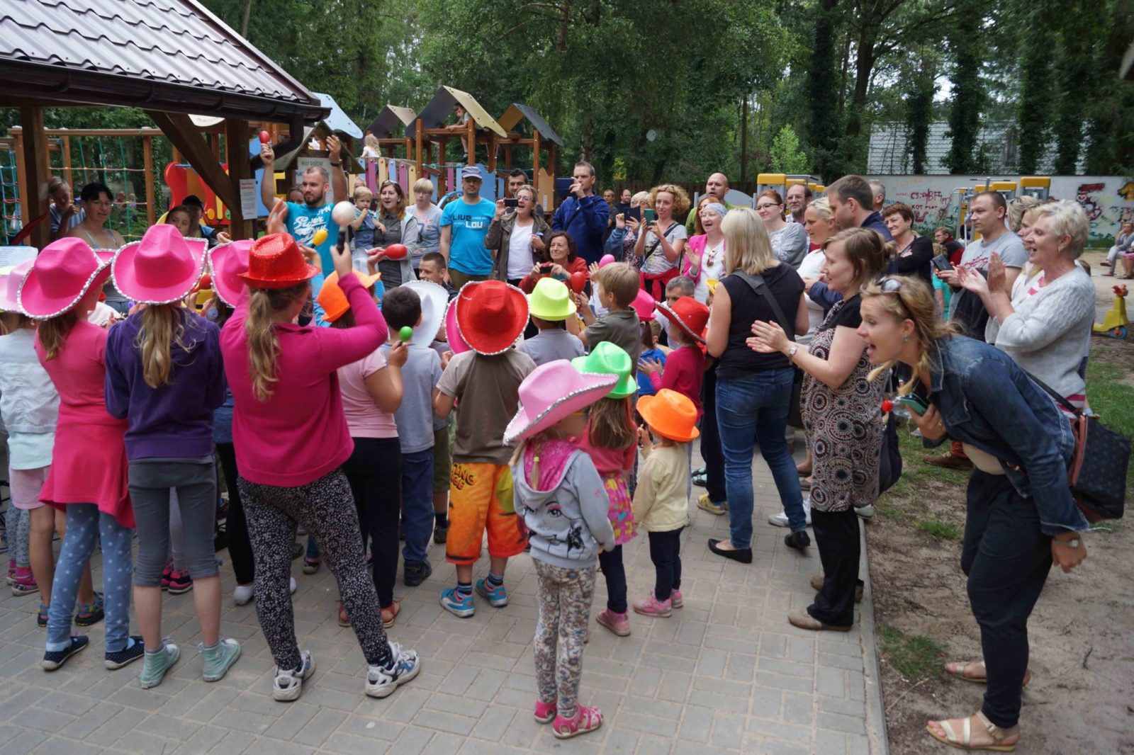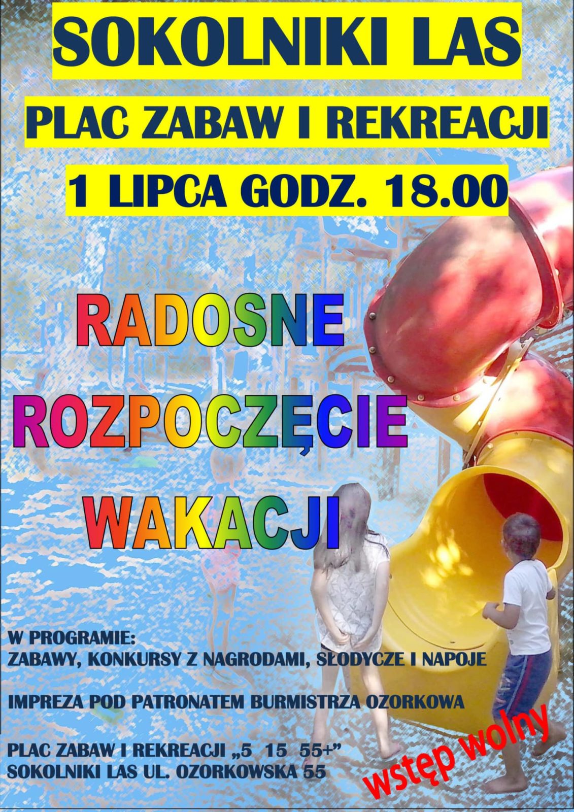 W sobotę 1 lipca na Placu Zabaw i Rekreacji „5 15 55+” miało miejsce Radosne Rozpoczęcie Wakacji 2017. Jak zwykle kipiąca energią Ula Pakuła z zespołem asystentów zapewniła uczestnikom niemal dwugodzinną wspaniałą zabawę. Zarówno dzieci jak i dorośli – rodzice a nawet dziadkowie – mieli okazję wspólnie tańczyć, śpiewać i przebierać się w dziesiątki kolorowych strojów. Mimo, że przez całe popołudnie zanosiło się na deszcz, pogoda okazała wspaniałomyślność i padać zaczęło dopiero 15 minut po zakończeniu imprezy.