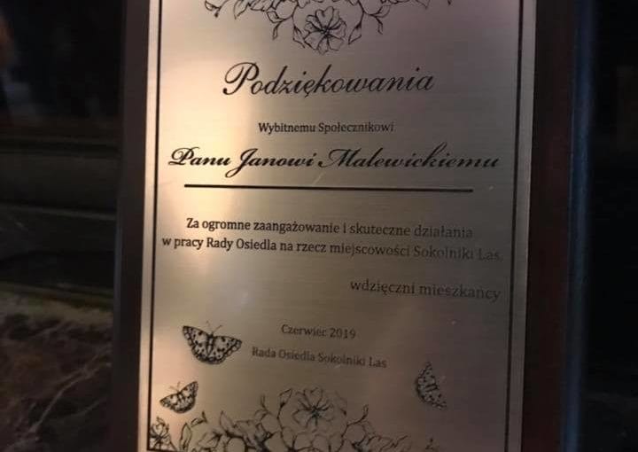 Zapis czerwcowego zebrania rady osiedlaWręczenie podziękowań dla Jana MalewickiegoTransmisja z zebrania