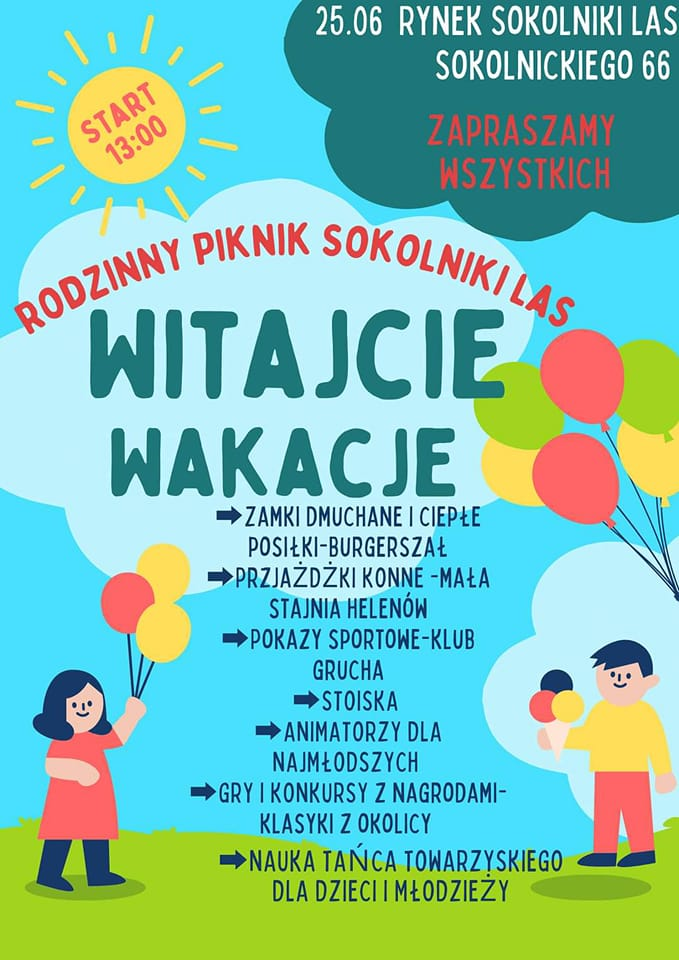 25.06 od g.13:00 Burger Szał Sokolniki Las wraz z Radą Osiedla Sokolniki Las serdecznie zapraszają wszystkich na Rodzinny Piknik WITAJCIE WAKACJE.