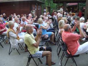 Oryginalne aranżacje utworów muzyki dixielandowej rozpłynęły się po sokolnickim lesie już o 18.00. Sweet & Hot Jazz Band to 9 miłośników dobrego jazzu i swingu. Za rok zespół, który rozpoczął swoją historię od Ośrodka Kultury Górna, będzie obchodził swoje 10-lecie. Założycielem jest Krzysztof Rajpold, grający na fortepianie. Do już pokaźnej rzeszy stałych odbiorców z pewnością dołączą mieszkańcy Sokolnik, którzy nie chcieli wypuścić zespołu ze sceny. Trwający blisko 2 godziny koncert był wspaniałą ucztą dla melomanów i rozgrzewką przed drugą częścią imprezy.